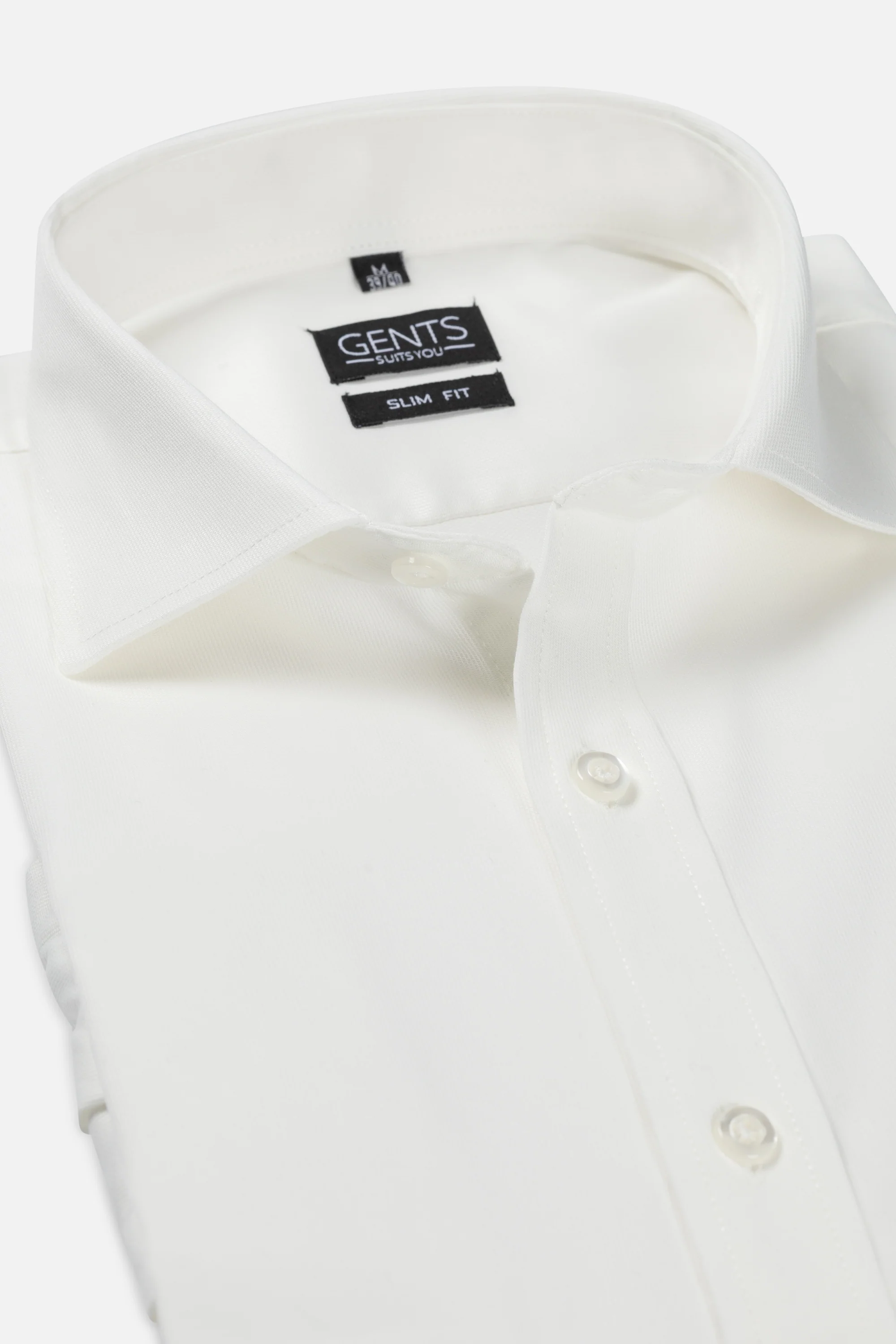 Ecru overhemd met dubbele manchetten en ademende bamboestof.