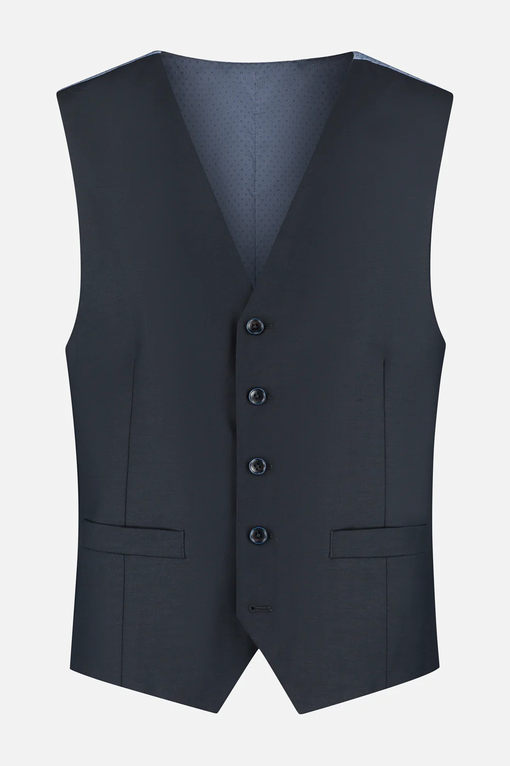 Donkerblauw gilet met V-hals, moderne pasvorm, kreukvrij.